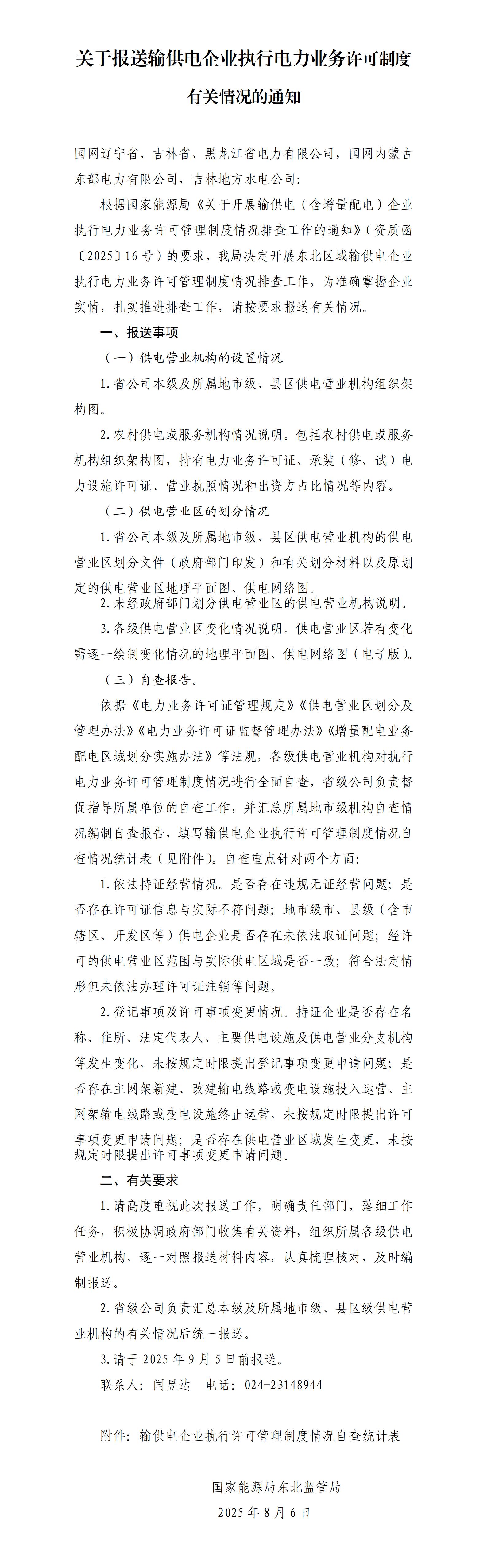 关于开展输供电企业执行电力业务许可管理制度情况排查工作的通知