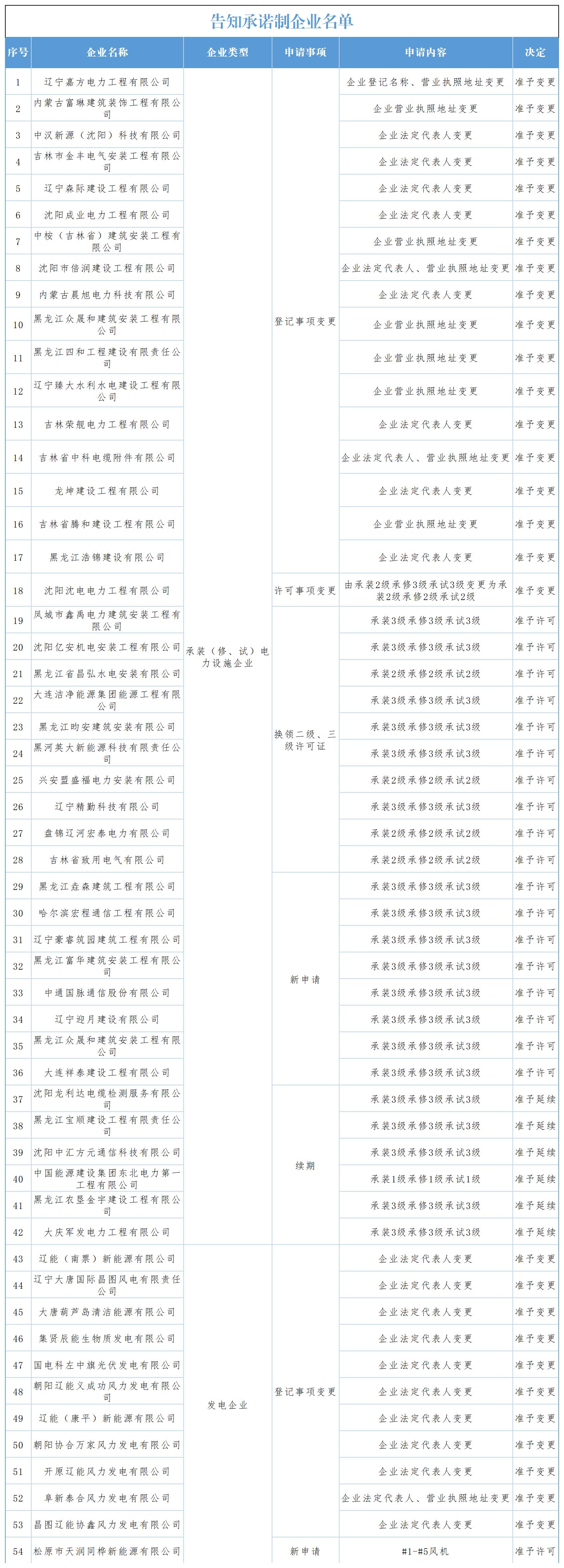 根据《电力业务许可证管理规定》《承装(修、试)电力设施许可证管理办法》和《国家能源局关于印发全面推行电力业务资质许可告知承诺制实施方案的通知》有关规定,现将2025年10月20日至10月26日审查通过的告知承诺制企业予以公告: