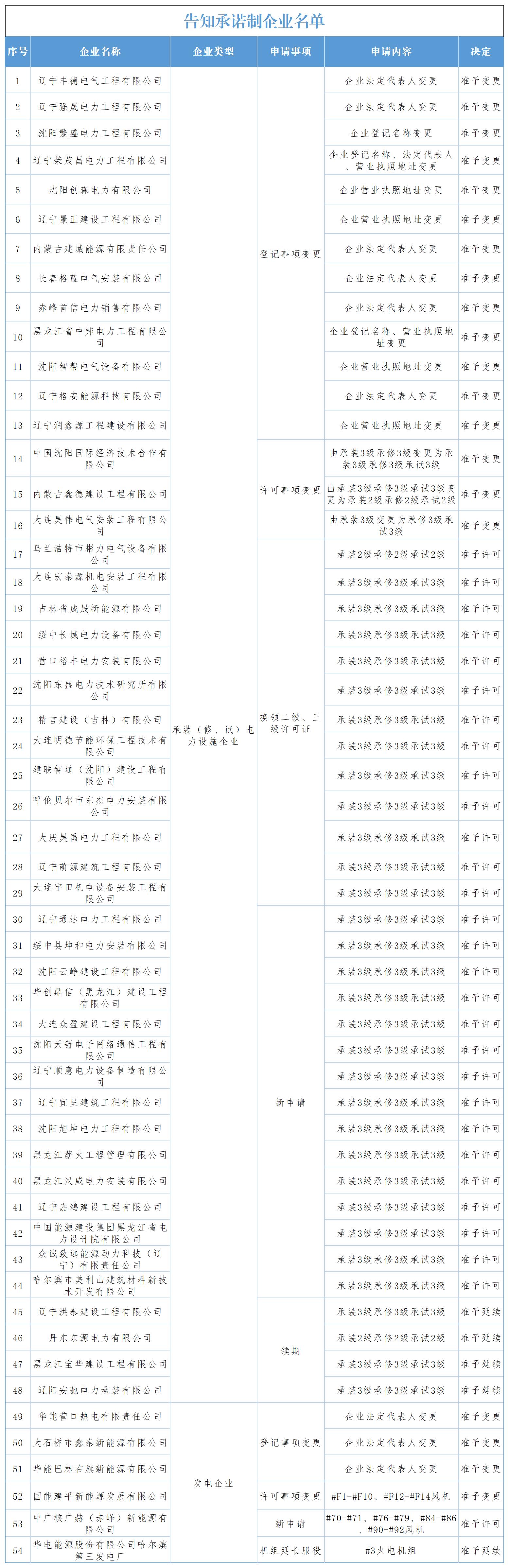 根据《电力业务许可证管理规定》《承装(修、试)电力设施许可证管理办法》和《国家能源局关于印发全面推行电力业务资质许可告知承诺制实施方案的通知》有关规定,现将2025年11月24日至11月30日审查通过的告知承诺制企业予以公告: