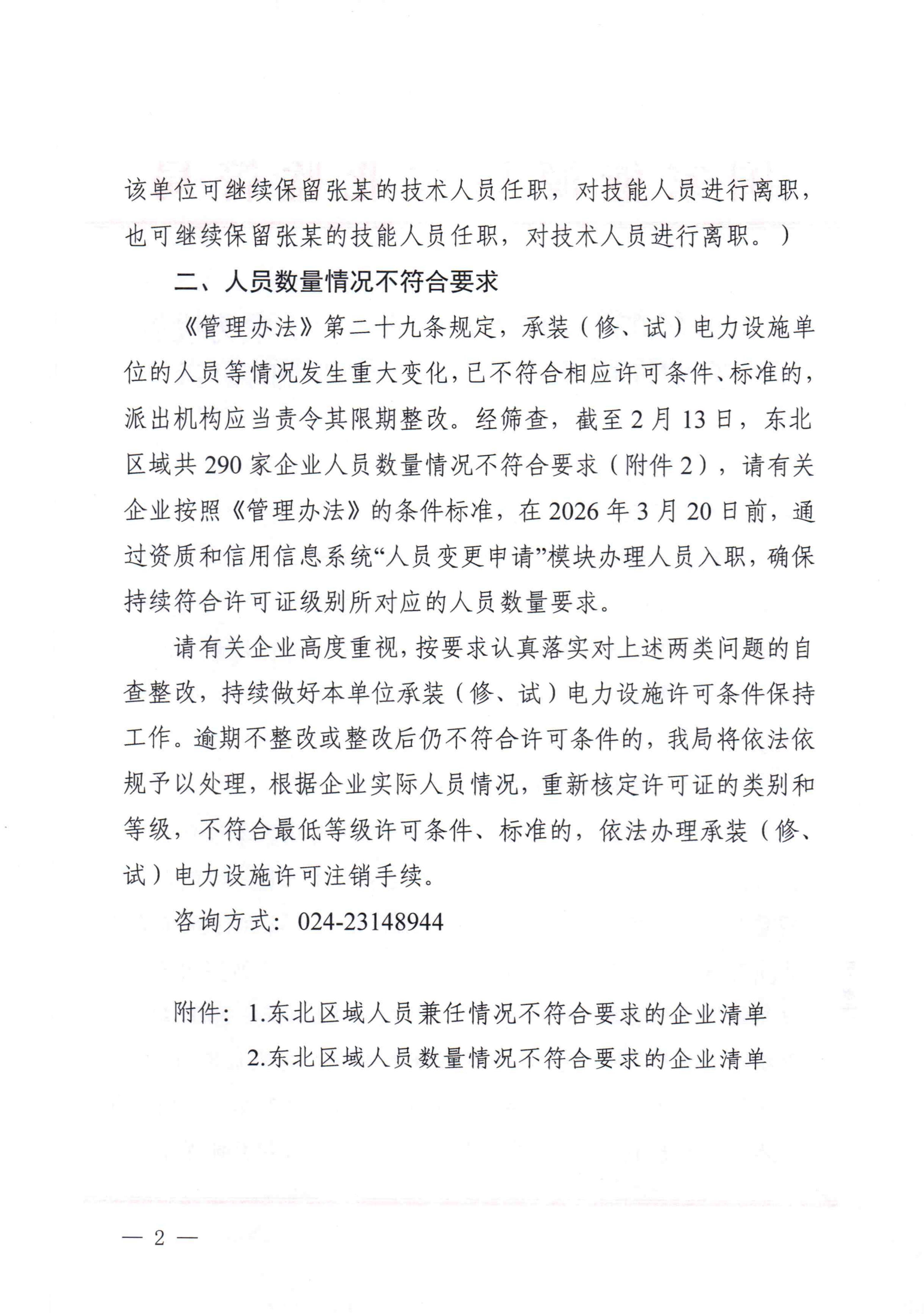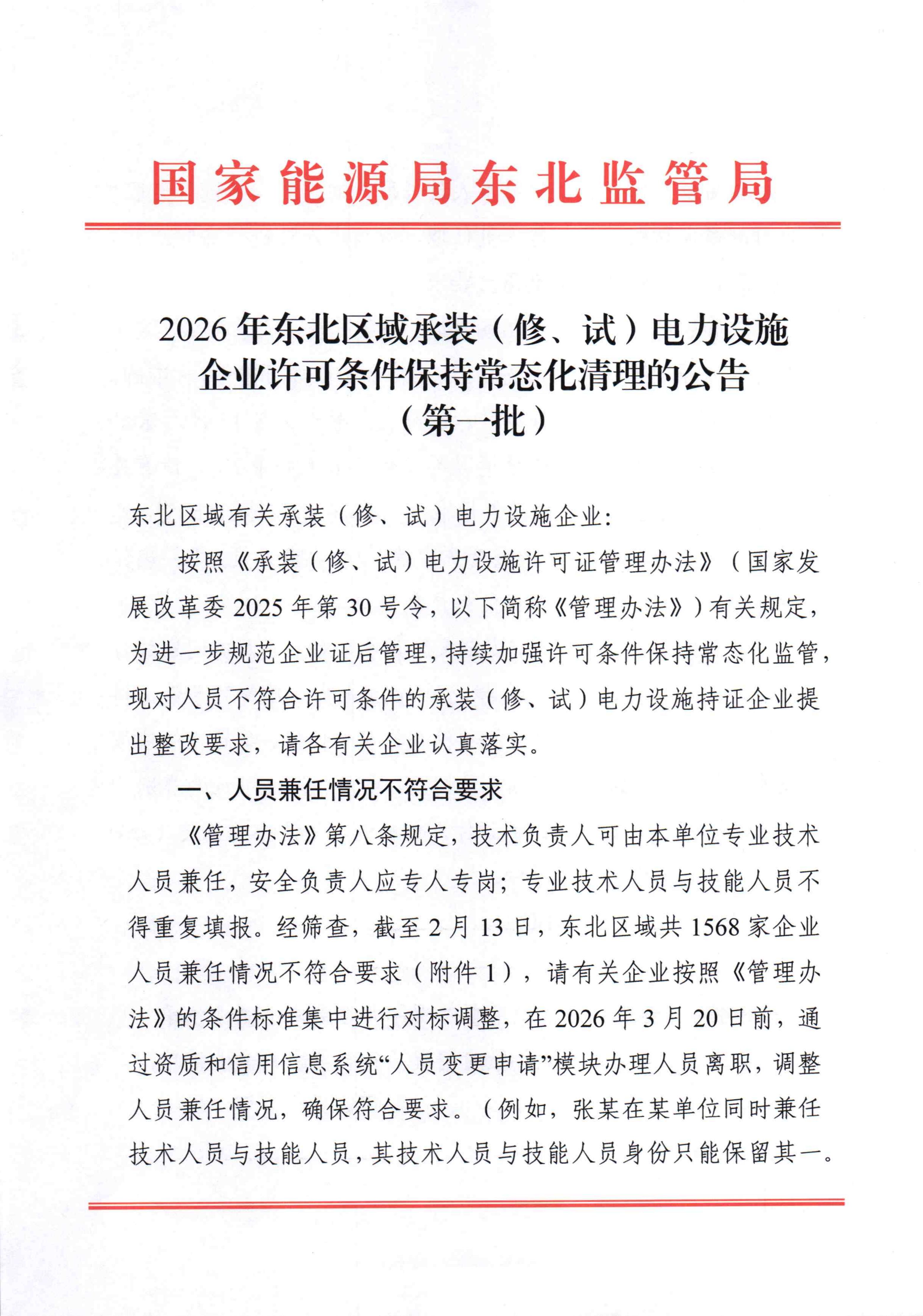 2026年东北区域承装(修、试)电力设施企业许可条件保持常态化清理的公告(第一批)