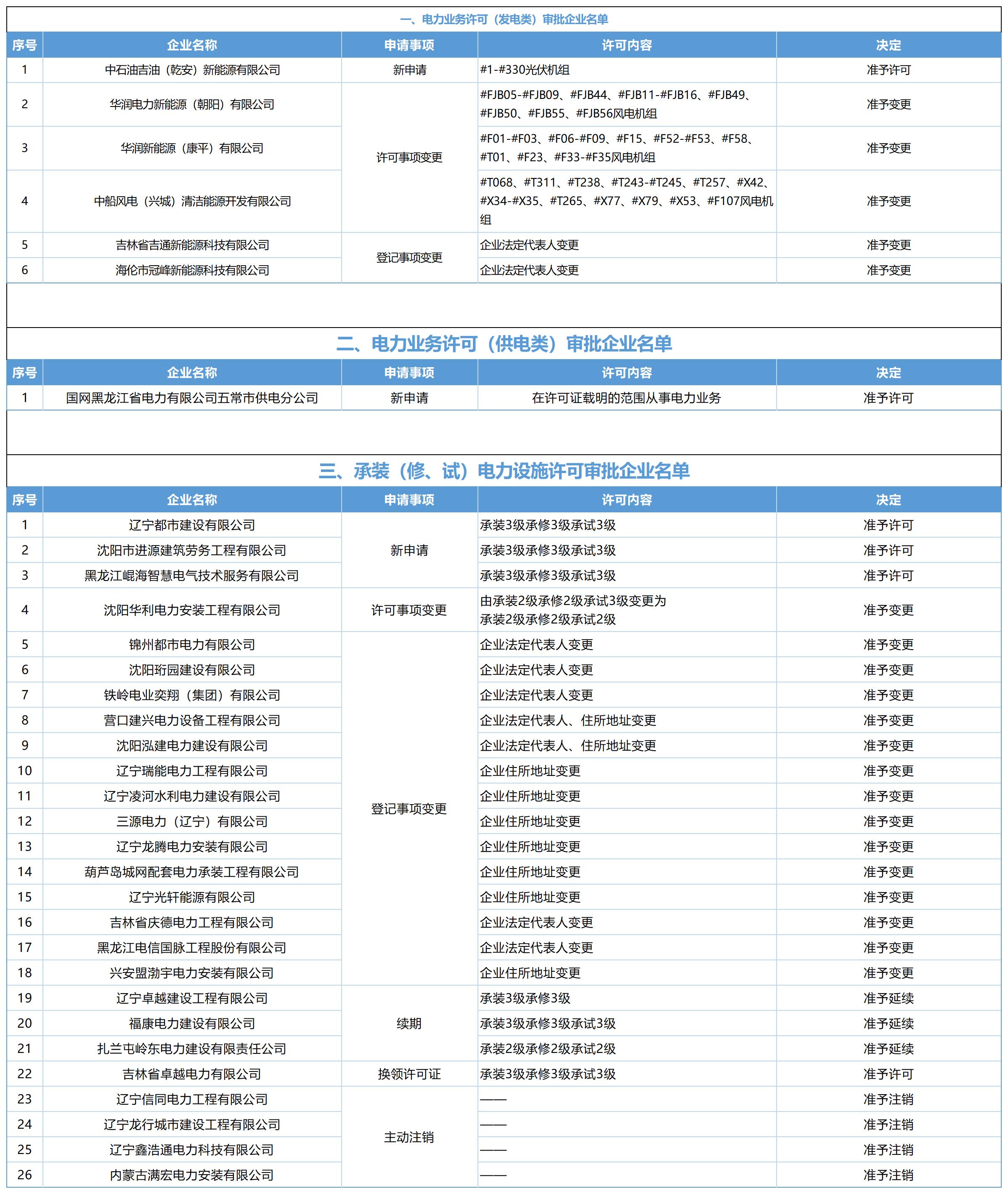 根据《电力业务许可证管理规定》《承装(修、试)电力设施许可证管理办法》和《国家能源局关于印发全面推行电力业务资质许可告知承诺制实施方案的通知》有关规定,现将2026年02月24日至02月28日审查通过的告知承诺制企业予以公告: