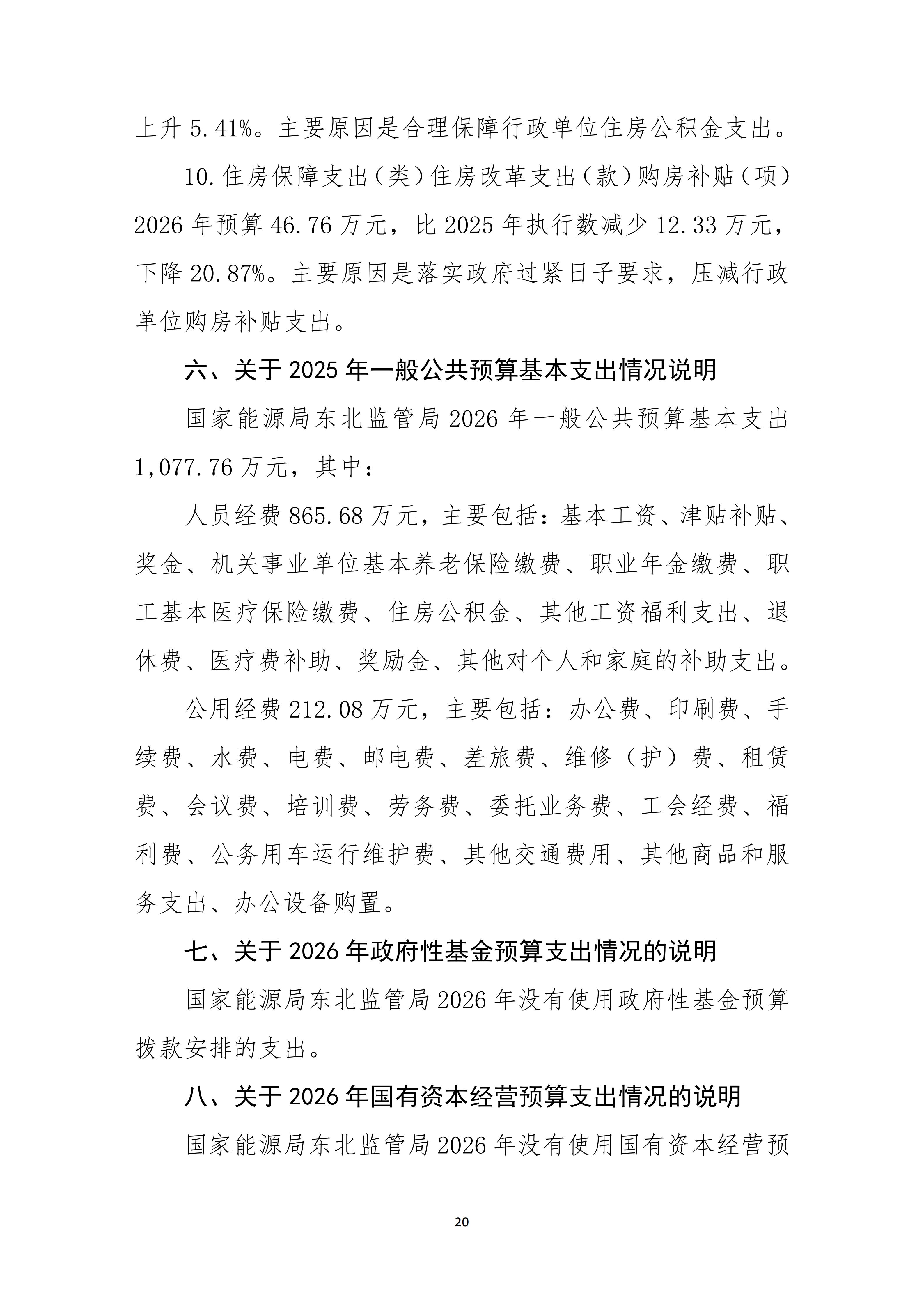 国家能源局东北监管局2026年部门预算