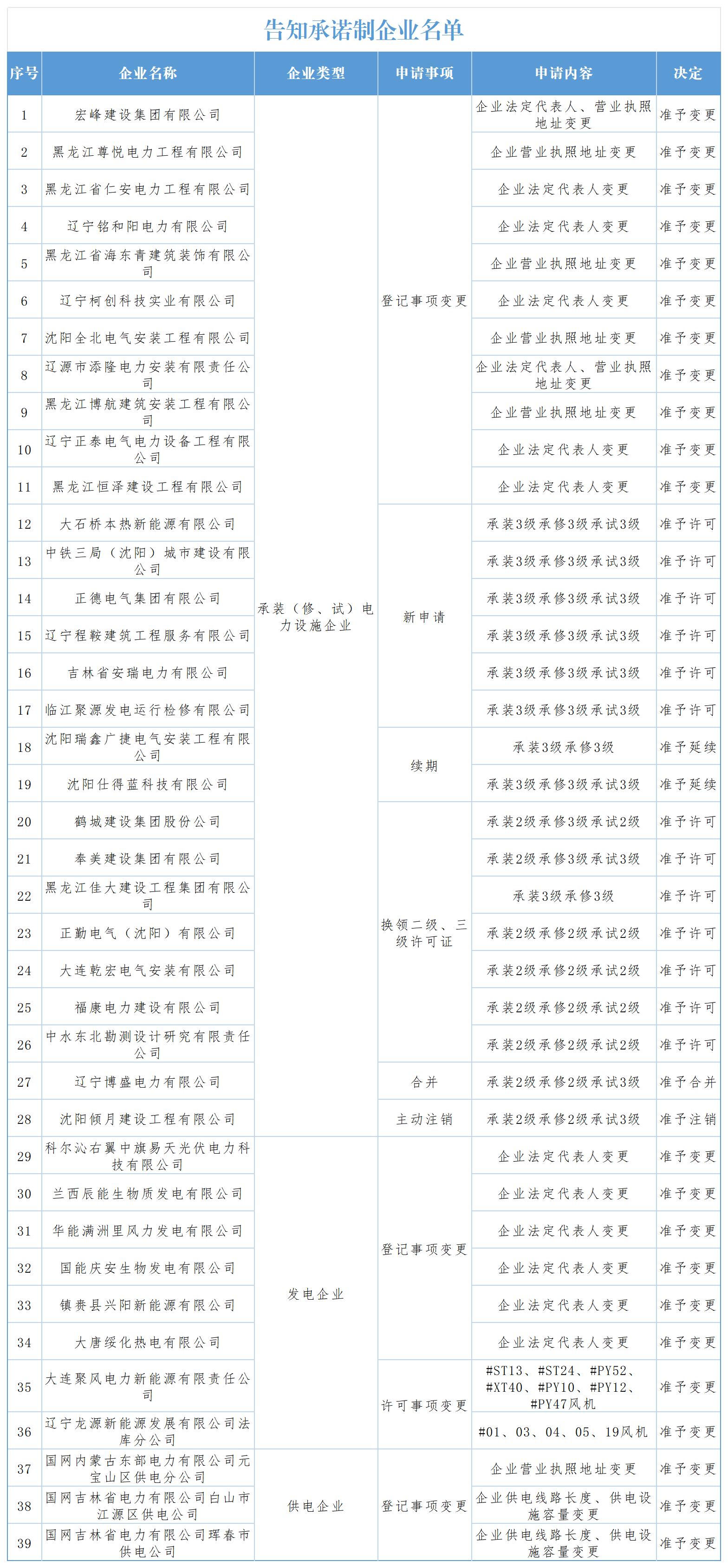 根据《电力业务许可证管理规定》《承装(修、试)电力设施许可证管理办法》和《国家能源局关于印发全面推行电力业务资质许可告知承诺制实施方案的通知》有关规定,现将2025年09月08日至09月14日审查通过的告知承诺制企业予以公告: