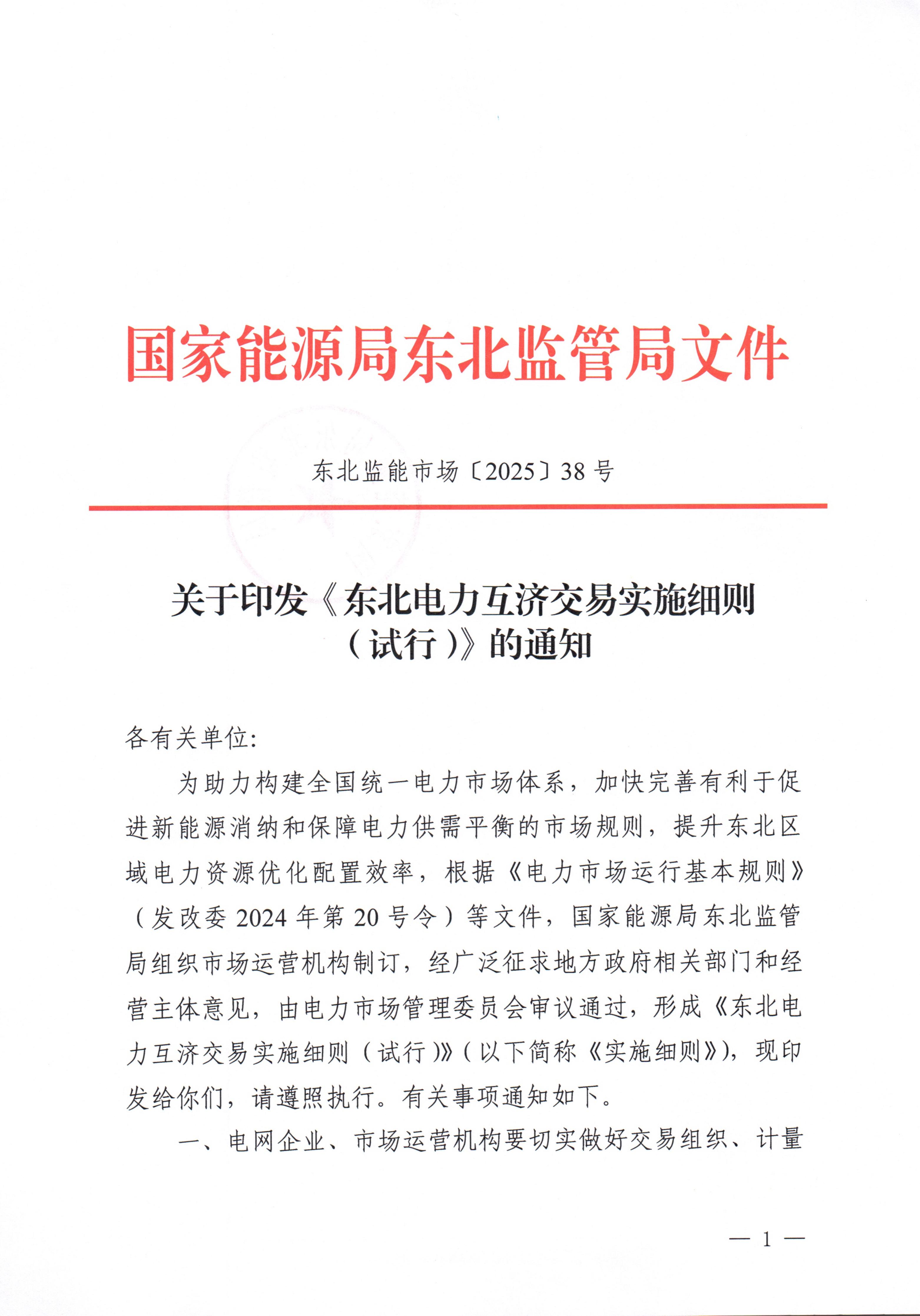 关于印发《东北电力互济交易实施细则(试行)》的通知